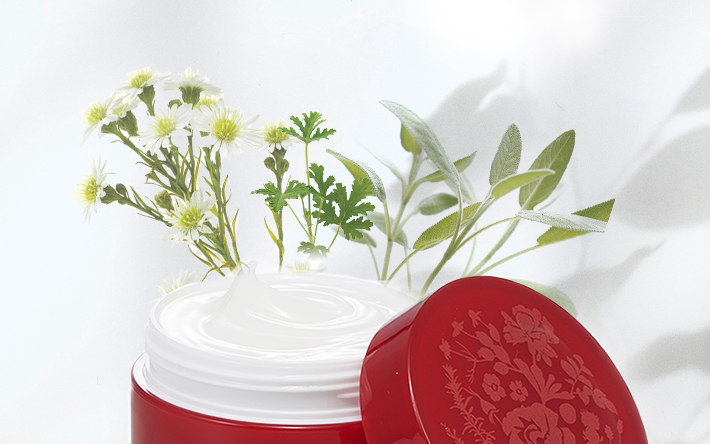 ナイアシンアミド、20種類のオーガニック植物成分(シア脂、セージ葉エキス、ハイブリッドサフラワー油、オリーブ果実油、ニオイテンジクアオイ油、ラベンダー油、ローズマリー油、カミツレ油、ゴボウ根エキス、カニナバラ果実エキス、カミツレ花エキス、ラベンダー花エキス、ローズマリー葉エキス、ビルベリー葉エキス、キュウリ果実エキス、ヨーロッパブナ芽エキス、アルガニアスピノサ核油、アマニ油、イランイラン花油、ティーツリー花油)、ヒト型セラミド、水溶性コラーゲン、スクワラン、ヒアルロン酸