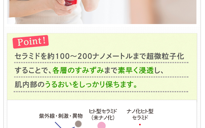 ナノ化 ヒト型セラミドが肌に潤いを与え、ハリ・ツヤの