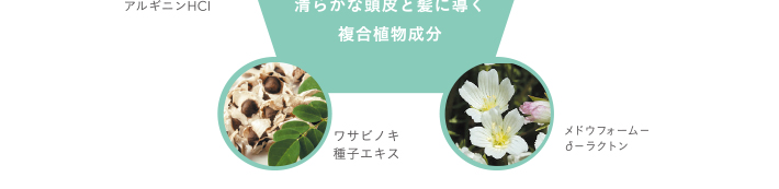 サトウキビ液汁エキス、チャ葉エキス、メドウフォーム-δ-ラクトン、ワサビノキ種子エキス、ジヒドロキシプロピルアルギニンHCl