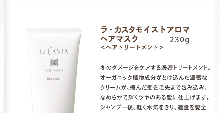 - 冬のダメージをケアする濃密トリートメント。オーガニック植物成分がとけ込んだ濃密なクリームが、傷んだ髪を毛先まで包み込み、なめらかで輝くツヤのある髪に仕上げます。