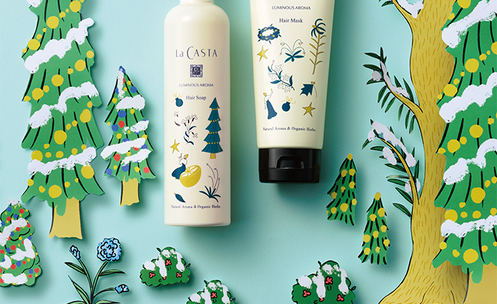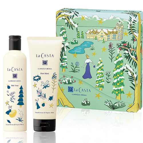 - わくわく心躍るシーズンにラ・カスタがお届けする特別なコフレ。心弾むアロマのヘアソープと、甘やかなアロマのヘアマスク、きらめく2つアロマが織りなす特別な時間を楽しみながら、美しく輝くツヤ髪へ。